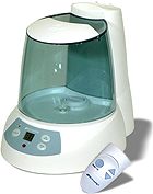 Electronic touch of a button comfort controls. Digital Programmable Humidistat maintains precise humidity level Digital humidistat operates within humidity range 30% - 65% with 5% increment. 16-Hour Timer turns the unit On and Off at a preset time. High visibility large LED display displays current and set humidity levels. Medicine outlet allows the unit to be used as vaporizer. Auto / Manual operating modes. Microban antibacterial protection inhibits growth of odor causing bacteria and mold. Large, easy-to-remove tank cap for ease of filling and cleaning. Dishwasher safe base easy to clean. Triple thermostatic protection from overheating. Automatic power shut-off when tank empty. Integrated control panel in the front of the unit. Lightweight portable design - easy to carry from room to room.